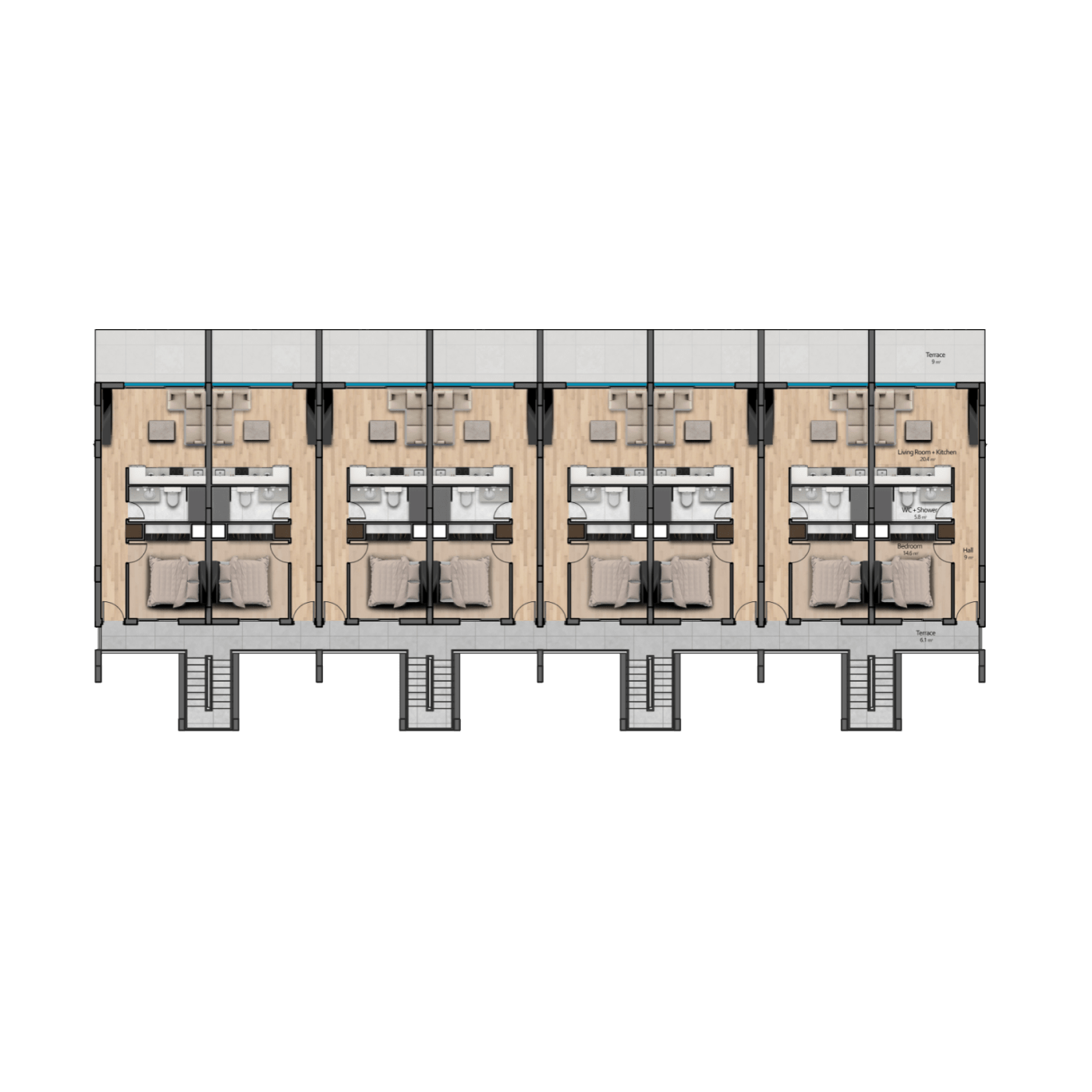 На ваш выбор апартаменты от студий до индивидуальных вилл с тремя спальнями и террасой "инфинити".