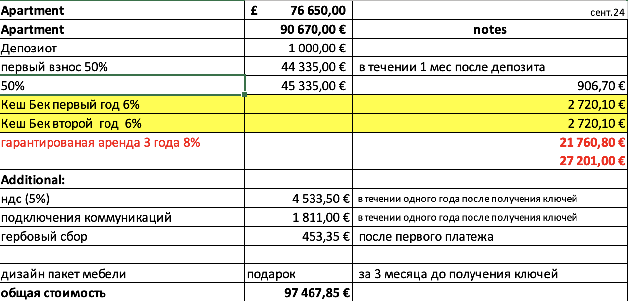 Примерный расчет доходности (стройка - сентябрь 2024)